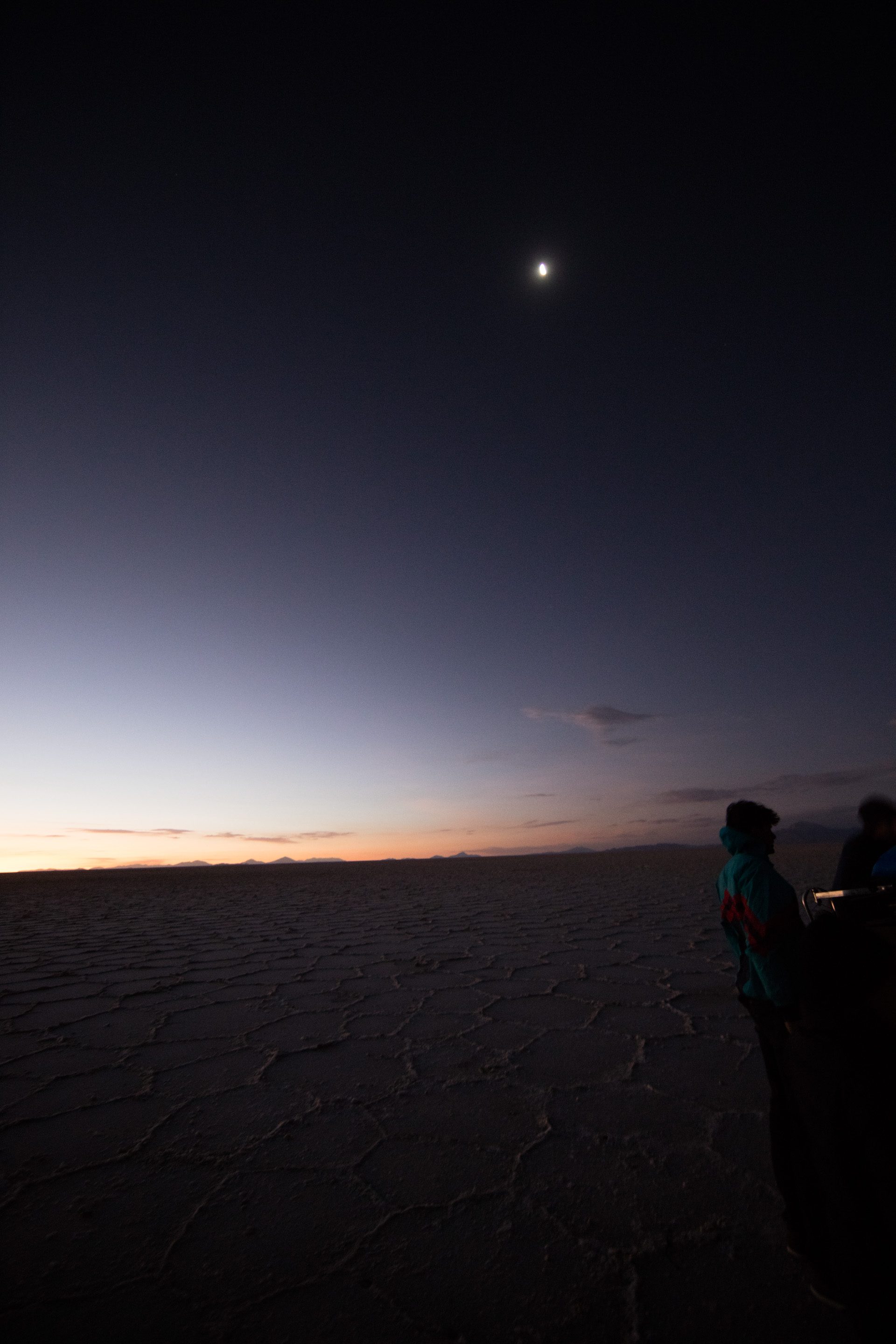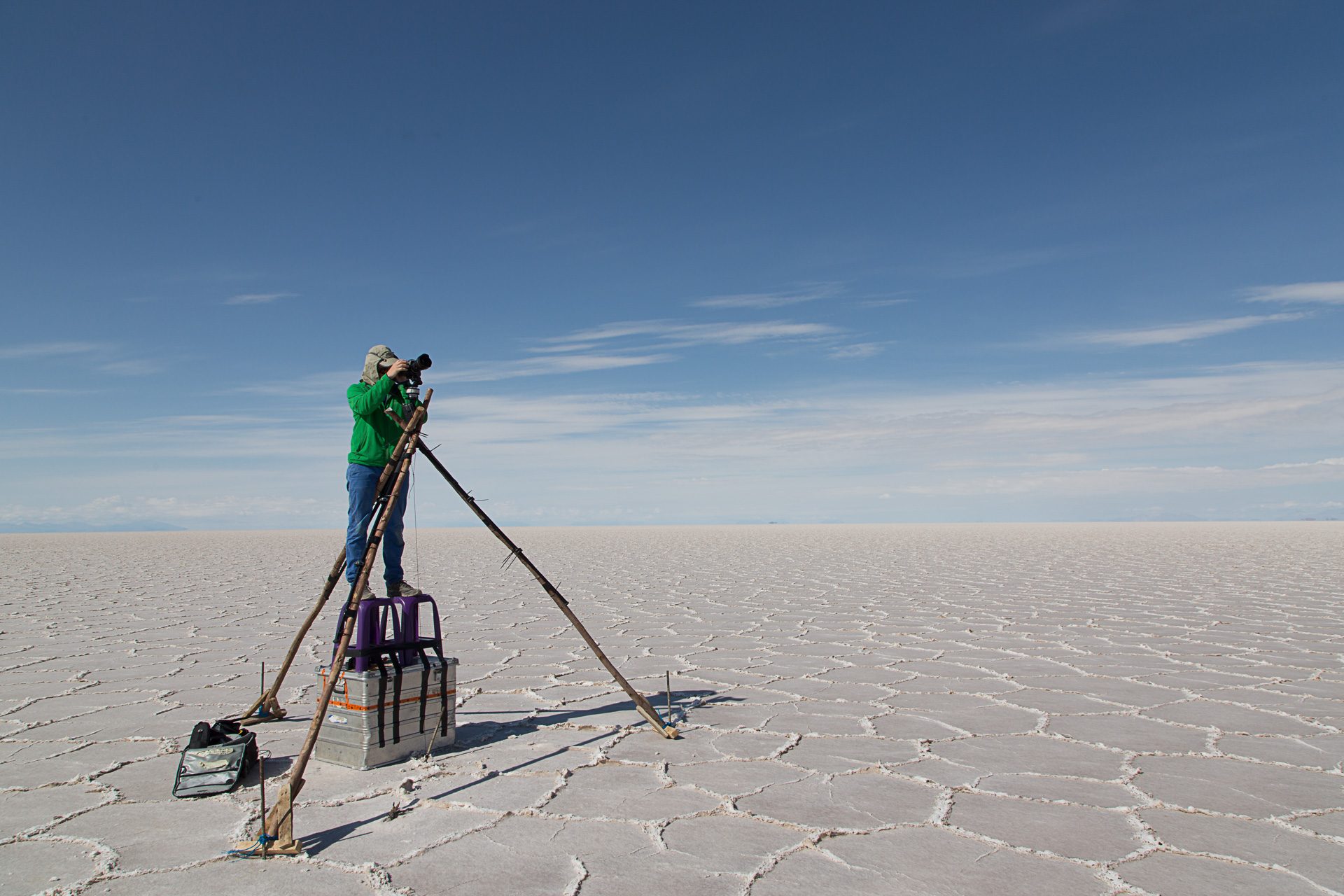 TS. I love it when horizons disappear. [In Uyuni] you don’t get a mirror image! The image isn’t reflected. You find yourself inside of it, but not in a symmetrically reflected image; you don’t cast a shadow; instead, you get the reverberation of a continuum. When the surface of the lake ripples, the reflected star-scape ripples too, making these gentle time-space wavelets, bringing two distant stars or cloud galaxies closer together and further apart. You’re treading upon the cosmos, upon the stars and galactic clouds, lithium deposits, more disorientation. North gets reset, and it’s no longer possible to orient yourself. After a month there, you can feel that you are a cosmic being.